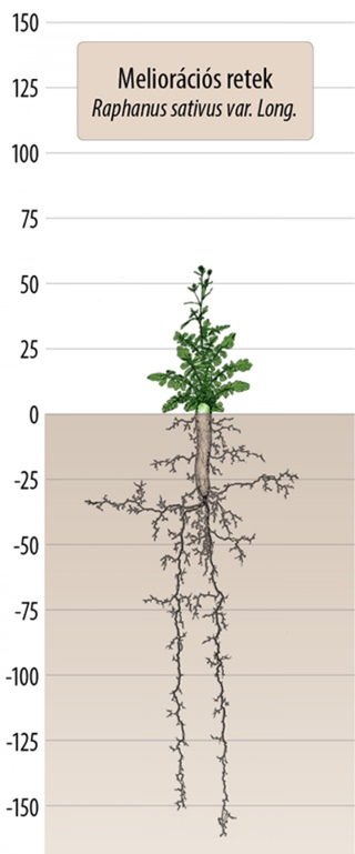 Nagy zöldtömeget fejleszt, jó talajtakaró. Tolerálja a melegebb időjárási körülményeket. A talaj levegő- és vízháztartásának javulása gyorsabb tavaszi talaj-hőmérséklet emelkedést, így korábbi vetést és kelést tehet lehetővé. Ősszel jelentős mennyiségű nitrogént épít be a zöldtömeg gyarapodásával – megvédve a téli kimosódástól – ami az utóvetemény számára hozzáférhetővé válik. A meliorációs retek lendületes kezdeti fejlődésének, nagy zöld tömegének köszönhetően optimális zöldítő növény, hiszen a rendkívüli gyökérfejlődésen túl jó gyomelnyomó, talajtakaró növény. Számottevő mennyiségű szerves tömeget hagy hátra, véd az erózióval szemben és jelentős mennyiségű nitrogént köt meg, megakadályozva annak téli kimosódását, konzerválva a megfelelő talajrétegben az utóvetemény részére.